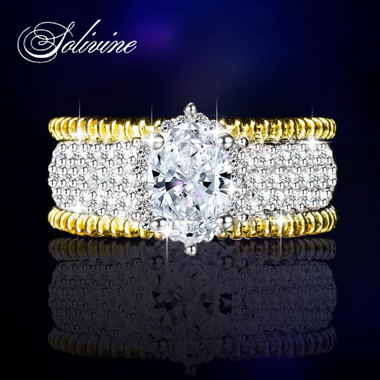 SOLIVINE Oval Cut Ring, Two Tone Gold Band, Vintage Engagement Ring for Women, 925 Silver Jewelry 5A Cubic Zirconia CZ Wedding Rings Gifts for Her